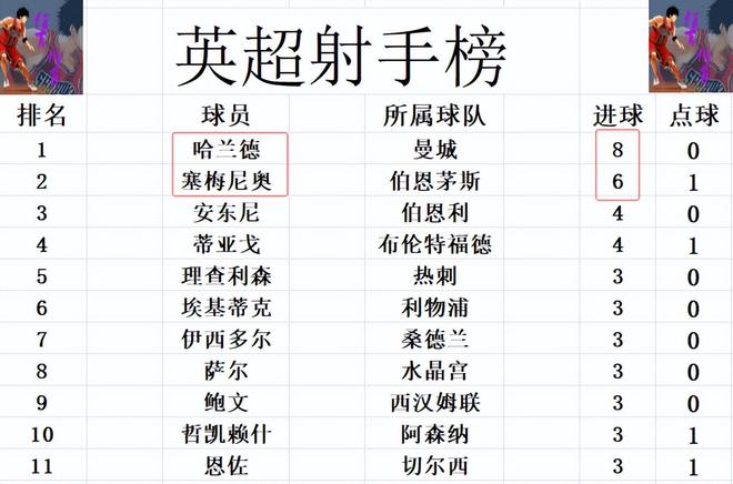 英超最新积分战报 神锋造3球紧追哈兰德 伯恩茅斯超阿森纳升至第2